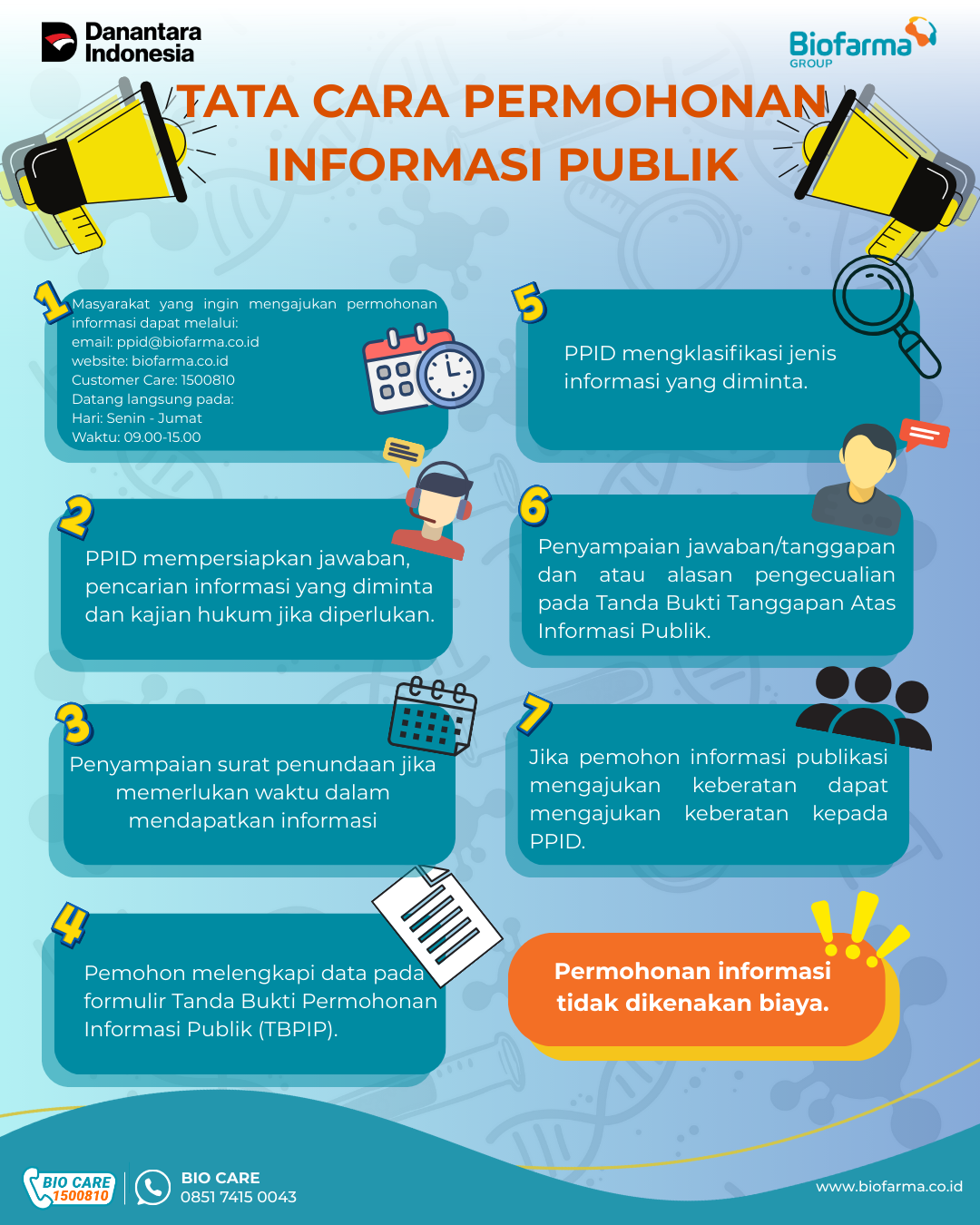 Bio Farma berkomitmen untuk memberikan kemudahan untuk memberikan Layanan Informasi dan Data Perusahaan. Berikut Tata Cara Permohonan Informasi Publik di secara online: