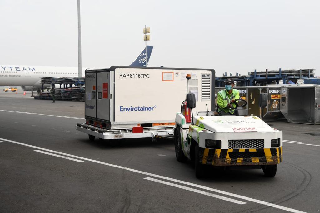 (Bandung 20/6) Bio Farma received 10 million doses Covid-19 vaccine on June 20, delivered using five flatbed trucks. Before delivered to Bio Farma, this Covid-19 vaccine bulk arrived at Soekarno Hatta Airport Cargo on June 20, 2021, at 12:39 WIB, using the Garuda Indonesia airline. The arrival of the 17th Covid-19 vaccine was received by the Secretary General of the Indonesian Ministry of Health, drg. Oscar Primadi, MPH together with several Board of Executives of PT Bio Farma (Persero).