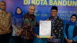 (01/11) Direktur SDM & Umum Bio Farma, Disril Revolin Putra (ketiga Kiri) bersama 13 pelaku usaha di kota Bandung menandatangani Komitmen Gerakan Masyarakat Hidup Sehat (Germas) bersama Pemerintah Kota Bandung yang dilakukan oleh Walikota Bandung M.Oded Danial (Kedua kanan) dan Kepala Dinas Kesehatan Kota Bandung, dr Rita Verita (kanan), pada tanggal 1 November 2018 di GSG Bio Farma. Oded M Danial, mengajak semua pelaku usaha yang berada di Bandung, untuk berkomitmen ikut serta menyehatkan masyarakat kota Bandung, sebagai Pilar Pembangunan kota Bandung, antara lain, Menyelenggarakan Aktivitas Fisik / Olaharaga Di Lingkungan Usaha, Memeriksakan Kesehatan Secara Berkala, Menerapkan Kawasan Tanpa Rokok Di Lingkungan Usaha Dan Membina Salah Satu Posyandu Di Wilayah Kerja Setiap Perusahaan.