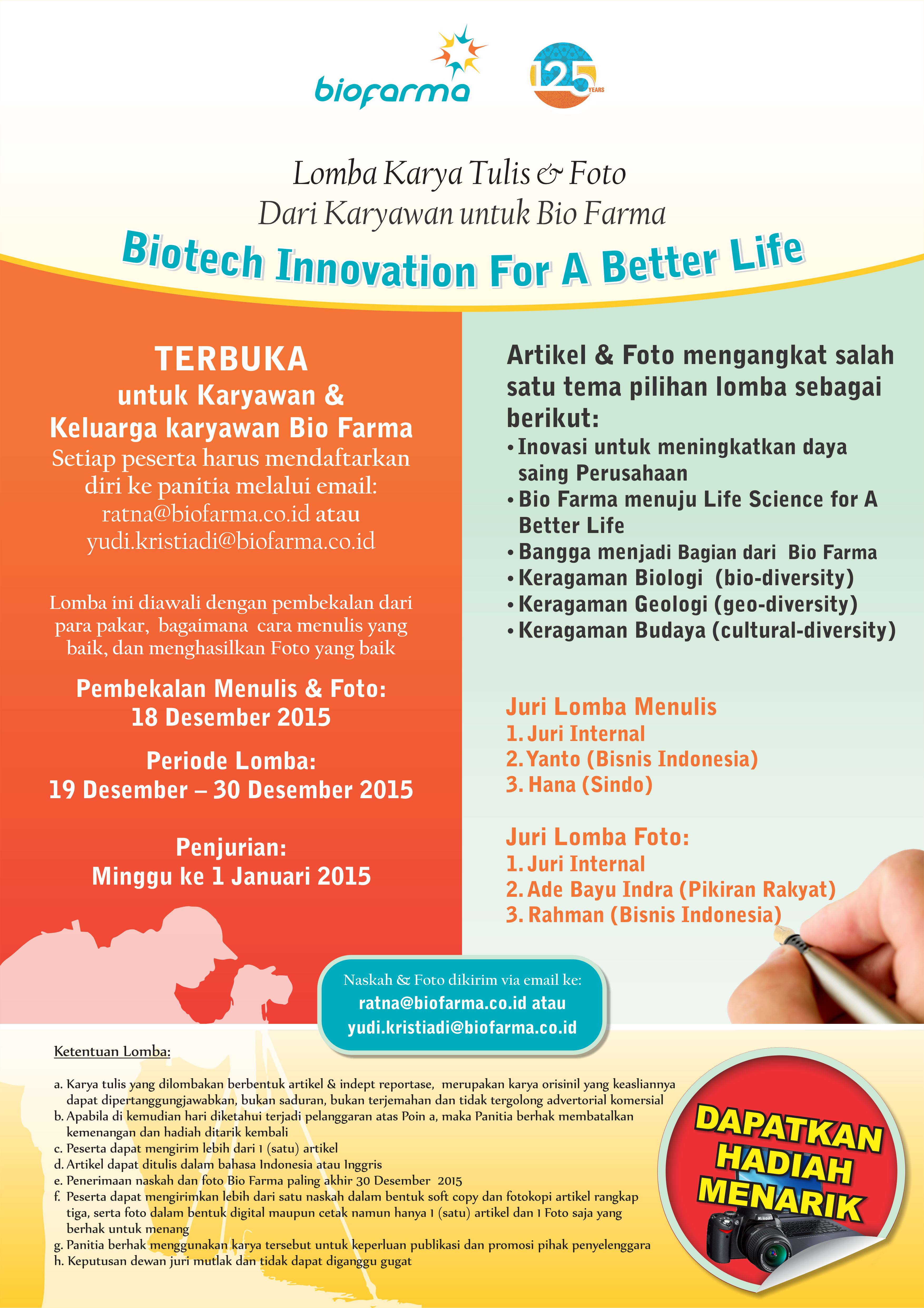 Lomba Karya Tulis & Foto dari Karyawan Untuk Bio Farma