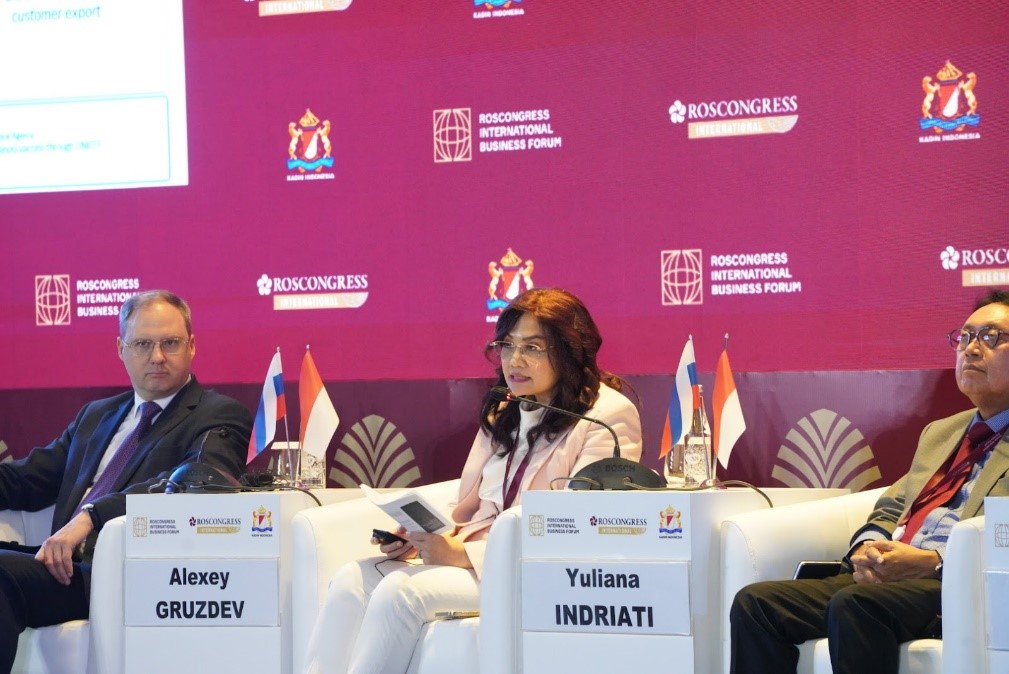 Hadir sebagai narasumber, Direktur Pengembangan Usaha Bio Farma, Yuliana Indriati, bersama bersama 7 panelis lainnya yaitu Ksenia Bolomatova, Deputy General Director, OZK Group; Executive Director, RussianUnion of Grain Exporters and Producers (RUSGRAIN UNION), Rulit Candra; Vice President for International Business, PT Pos Indonesia; Alexey Gruzdev, Deputy Minister of Industry and Trade of the Russian Federation; Eddy Martono, Chairman, Gabungan Pengusaha Kelapa Sawit Indonesia (GAPKI); German Maslov, Vice President of Liner and Logistic Division, FESCO Transportation Group; Rustem Muratov, Chief Executive Officer, Binnopharm Group; dan Didit Ratam, Chairman, Ketua Komite Bilateral Rusia-Belarus KADIN Indonesia, menyampaikan materi dengan tema “Moving from Trade to Collaboration : Priorities and Tasks”.