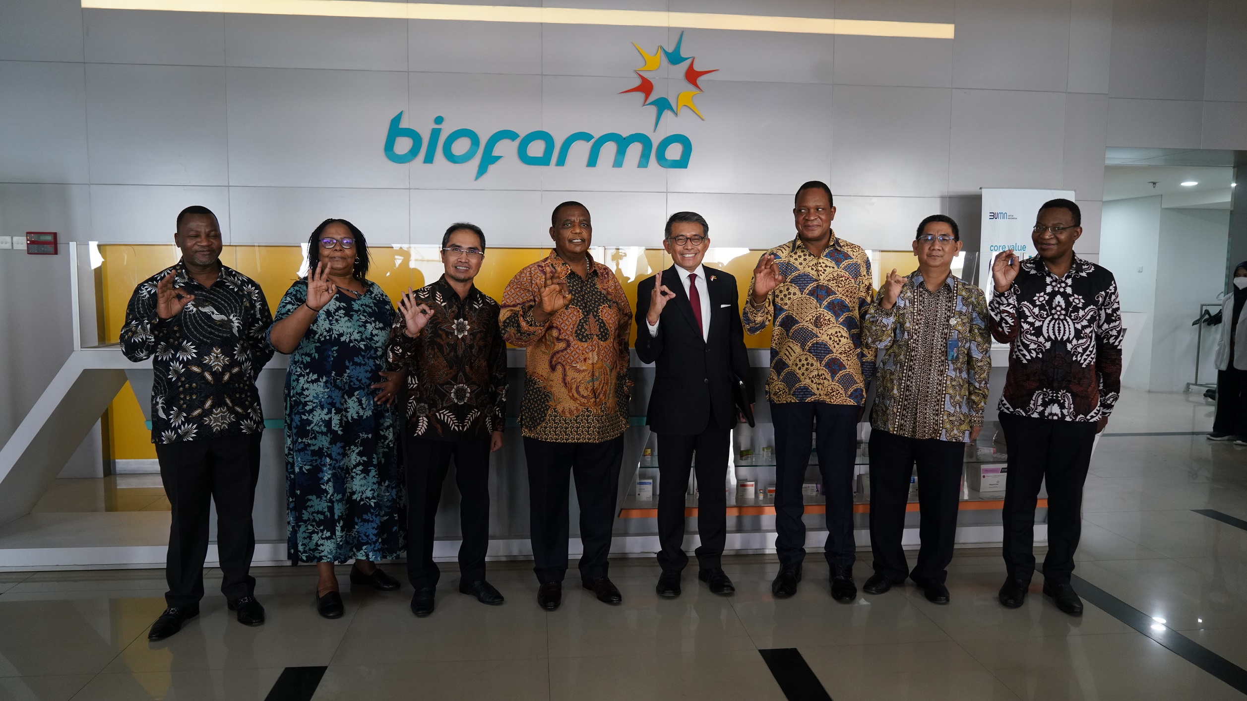 Wapres Zimbabwe Constantino Chiwenga (keempat dari kiri), yang sekaligus merangkap Menteri Kesehatan dan Perlindungan Anak Republik Zimbabwe mengunjungi fasilitas produksi di Gedung 43 milik Bio Farma. Dalam kunjungan ini, beliau didampingi oleh beberapa delegasi dari Kementerian terkait di Zimbabwe, Duta Besar Indonesia untuk Republik Zimbabwae, Dewa Made Juniarta Sastrawan dan diterima langsung oleh Direktur Utama Bio Farma Honesti Basyir (Ketiga dari Kiri) beserta jajaran Board of Executives, dan Jajaran Kementerian Luar Negeri RI, serta Kementerian Kesehatan RI.