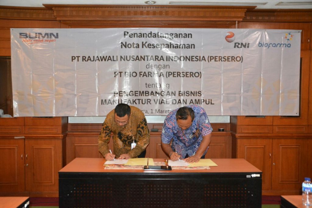Kamis, 1 Maret 2018, Dilaksanakan Penandatanganan MoU antara Bio Farma dan RNI dalam rangka pengembangan bisnis manufaktur vial dan ampul.