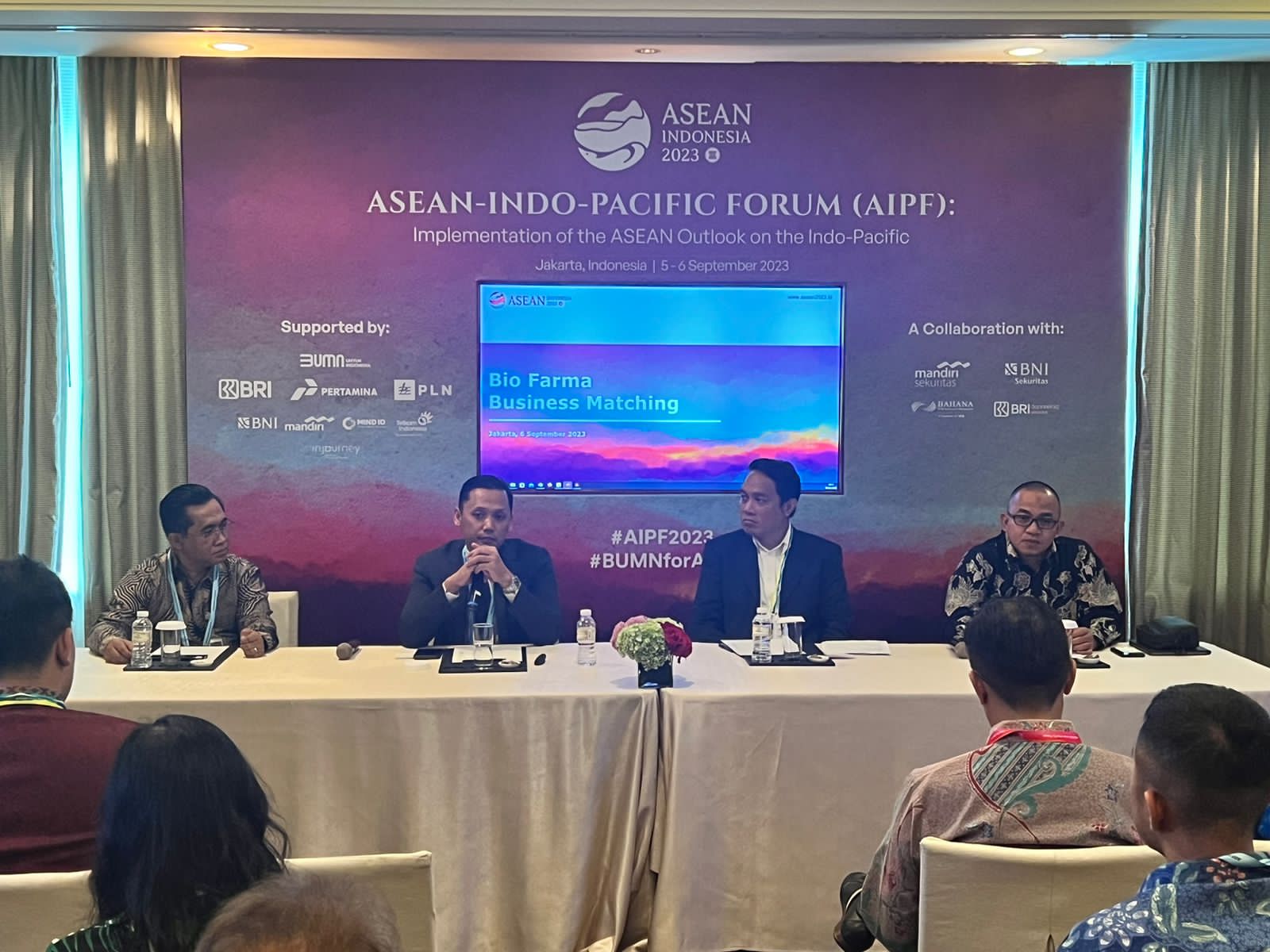 Jakarta (06/09) - Biofarma Group membagikan beragam solusi kesehatan dari hulu hingga hilir kepada delegasi Gelaran ASEAN Indo-Pacific Forum (AIPF) 2023. Solusi tersebut diantaranya Medbiz, Medtrack, Mediverse, Medevo, Medwell, dan Q100+ Platform.