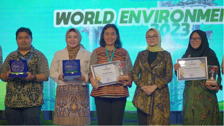 Direktur Medis dan Hubungan Kelembagaan Bio Farma, Sri Harsi Teteki saat menerima penghargaan menyampaikan bahwa Bio Farma berkomitmen tinggi dalam menjalankan aktivitas operasi yang ramah lingkungan untuk menjaga kelestarian dan keseimbangan alam”.