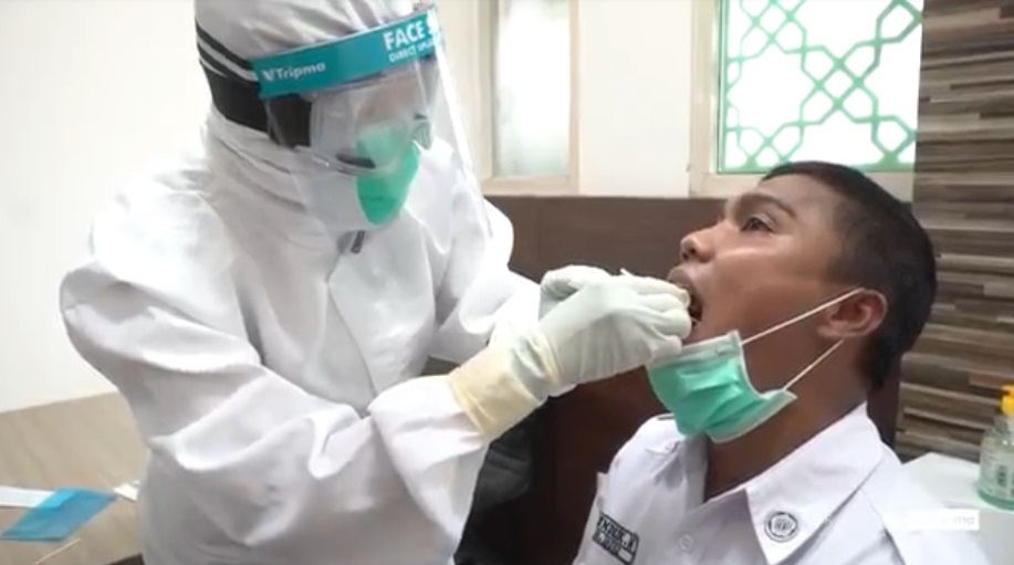 Petugas Kesehatan Bio Farma sedang memberikan layanan PCR