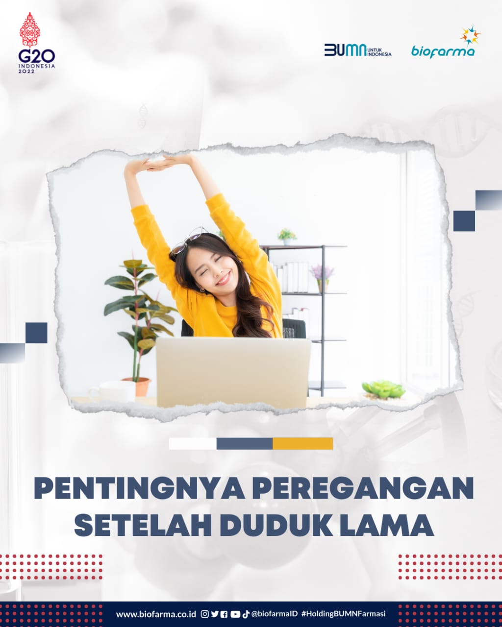 Jika Biotizen memiliki pekerjaan yang harus duduk untuk waktu yang lama, alangkah baiknya setiap dua jam sekali lakukanlah peregangan agar otot dan badan rileks kembali setelah duduk lama. Banyak gerakan mudah dan singkat yang dapat dilakukan di sela-sela kegiatan kamu dengan cara :
