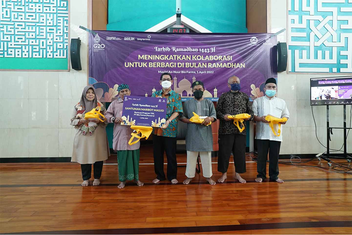 Dalam menyambut kedatangan bulan suci ramadhan, Bio Farma menyelenggarakan acara tarhib ramadhan dengan tema “Meningkatkan Kolaborasi untuk Berbagai di bulan Ramadhan” yang di selenggarakan di Masjid An-Nuur Bio Farma, juga secara langsung melalui zoom meeting, dan youtube channel Bio Farma pada (1/4/2022). Acara ini dihadiri oleh Dewan Komisaris, Direksi, seluruh anggota Fiadifa, dan seluruh karyawan Bio Farma baik secara luring maupun daring. Kemudian, acara dimulai dengan pembacaan ayat suci Al-Quran oleh salah seorang dari komunitas disabilitas dan dilanjutkan dengan sambutan oleh Honesti Basyir, selaku Direktur Utama Bio Farma.