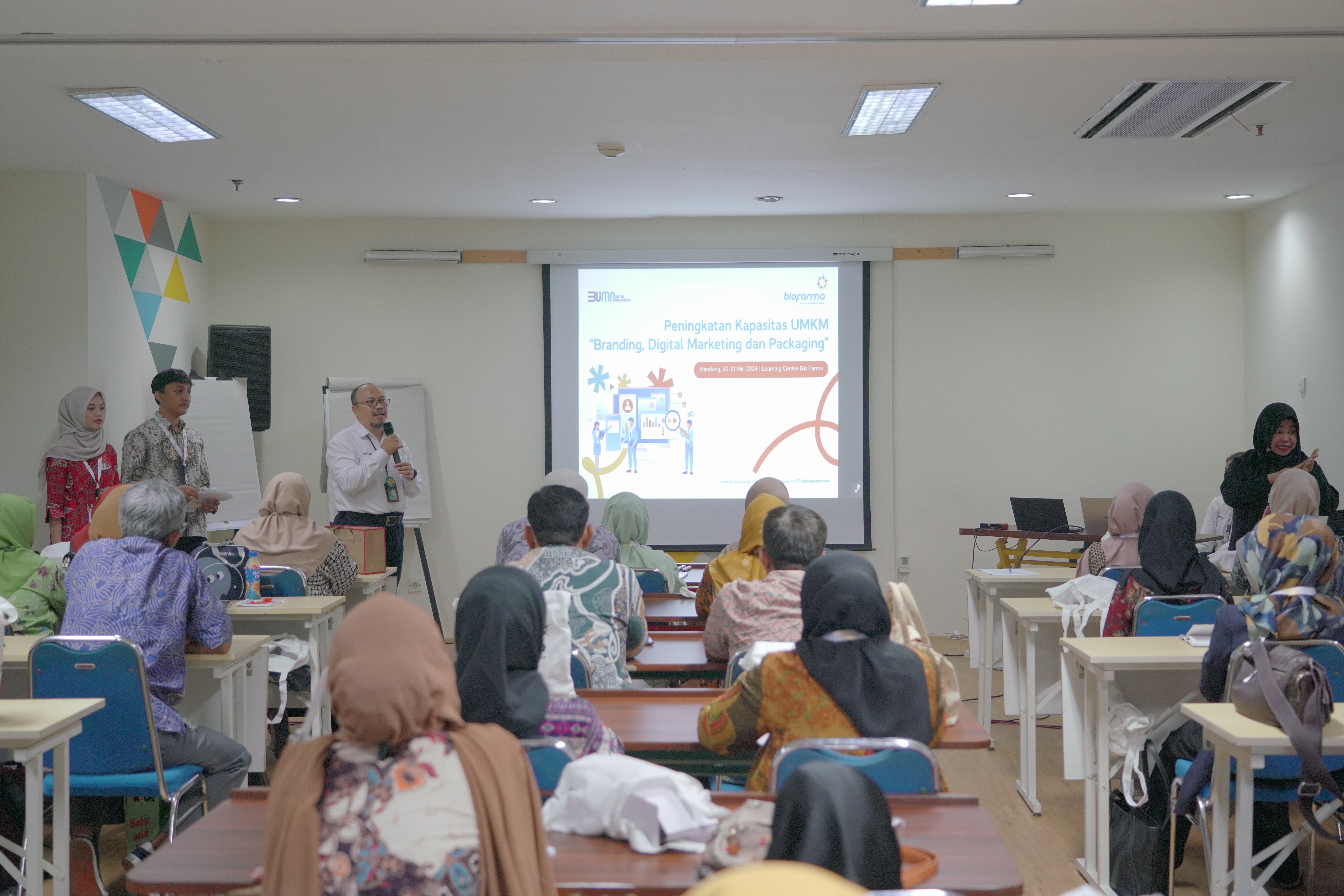 Bio Farma melalui program Tanggung Jawab Sosial dan LIngkungan (TJSL) menggelar kegiatan Peningkatan Kapasitas UMKM “Branding, Digital Marketing & Packaging” dengan memberikan pelatihan kepada 50 peserta yang terdiri dari UMKM Binaan Bio Farma, Dinas Koperasi dan Usaha Kecil Menengah (KUKM) Kota Bandung, Dinas KUKM Kab. Bandung Barat, UMKM Parakarsa, dan UMKM kelompok penyandang disabilitas. Kegiatan pelatihan diselenggarakan selama 2 hari pada 20-21 Mei 2024 di Learning Center Bio Farma Bandung.