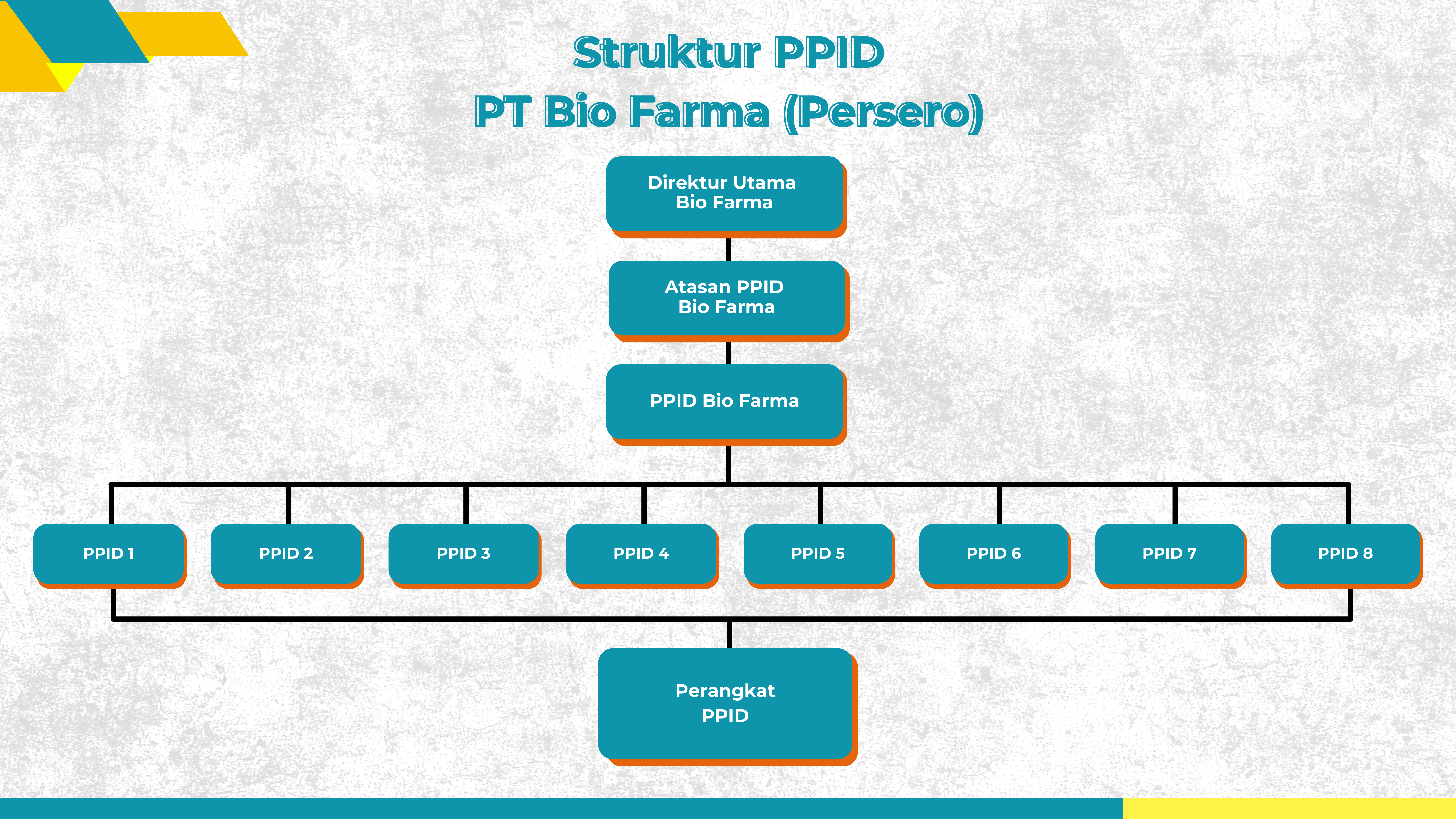 Bio Farma memiliki 1 Pedoman #:SM-S16.3 mengenai Akses Informasi Publik dan 1 Prosedur baku Dok.# : 216K - TKDPIP mengenai Tata Kelola dan Pelayanan Informasi Publik. Perangkat KIP tersebut untuk mengatur pengelolaan dan Aliran Informasi publik yang disediakan oleh Bio Farma kepada Pemohon Informasi Publik. Bio Farma Menetapkan dan menunjuk Sekretaris Perusahaan dan Kepala Bagian Komunikasi Perusahaan sebagai Pejabat Pengelola Informasi dan Dokumentasi (PPID).