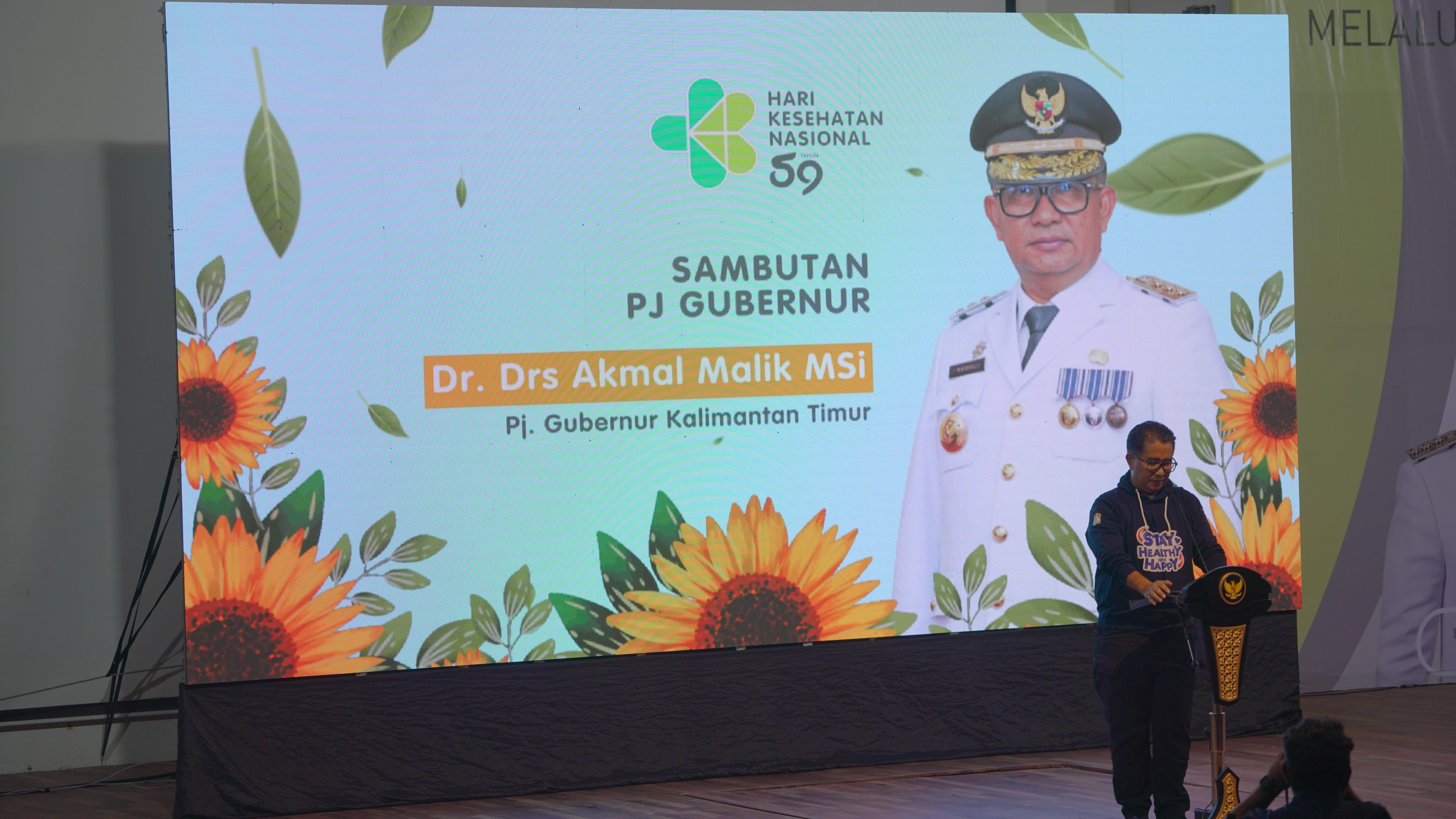 Pj. Gubernur Kalimantan Timur. Akmal Malik dalam sambutannya menyampaikan bahwa pada kegiatan HKN ke-59 ini dilaksanakan launching program vaksin DBD dan juga deteksi dini Cerviscan.